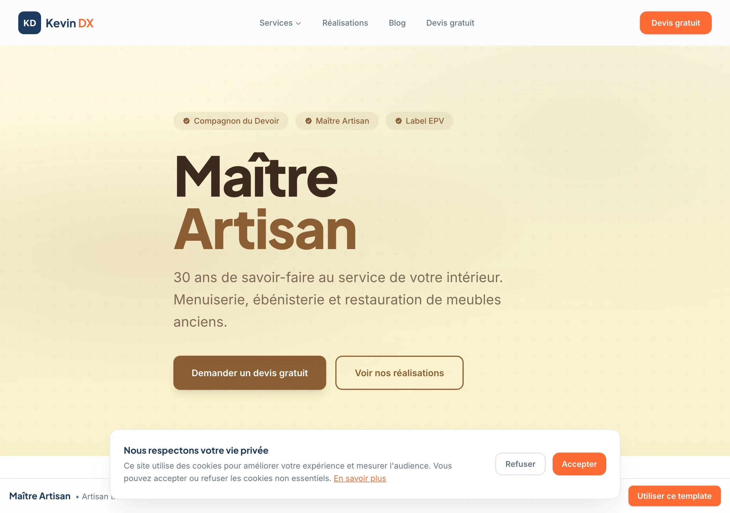 En savoir plusIdeal pour les artisans et petites entreprises qui souhaitent une presence en ligne professionnelle.
