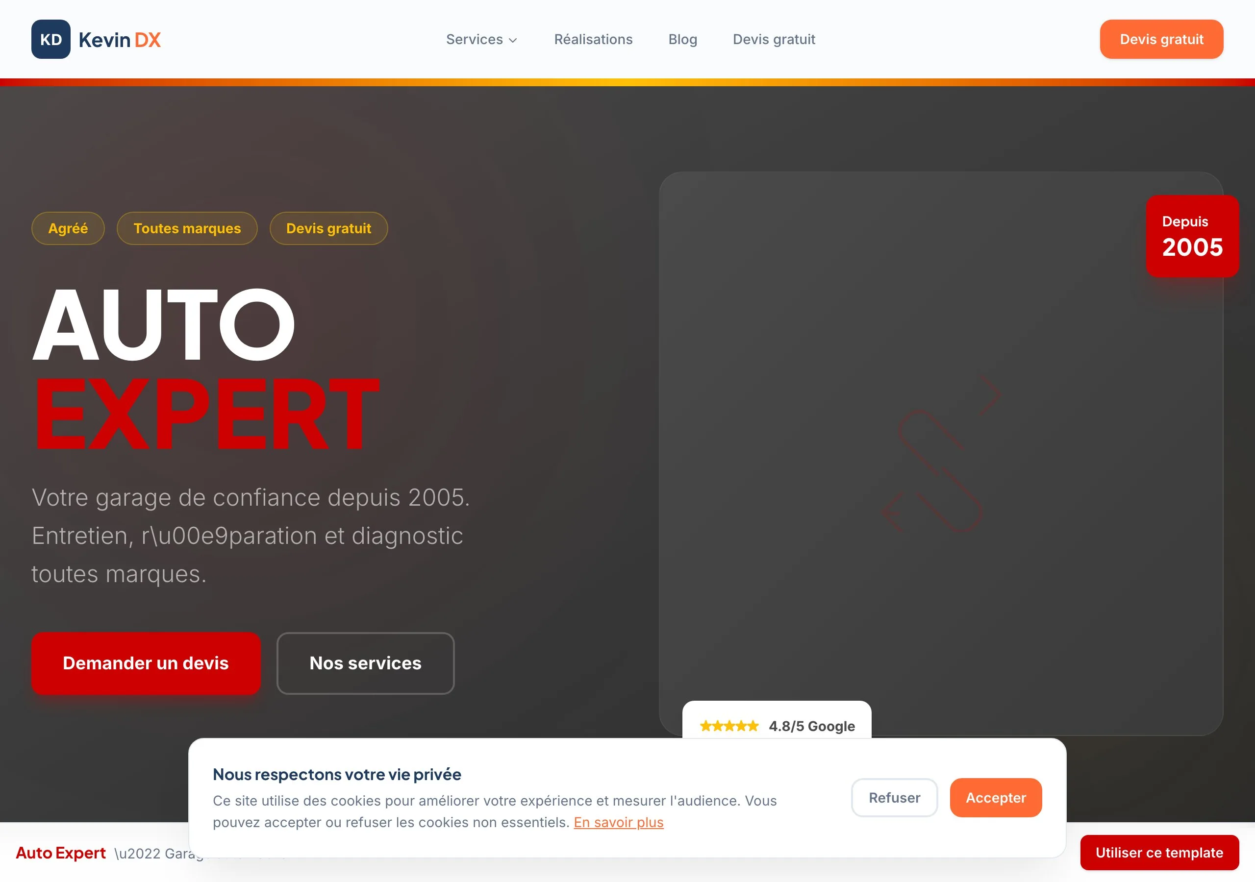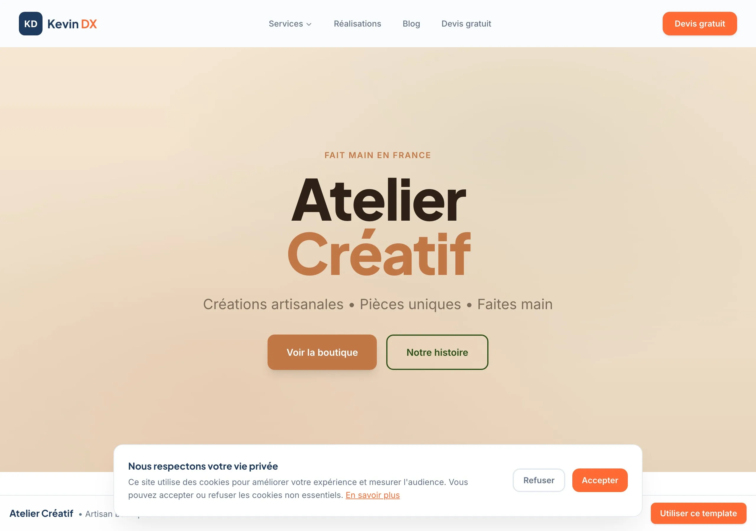 Des modèles de sites web optimisés et prêts à être personnalisés. Chaque template est pensé pour convertir vos visiteurs en clients.